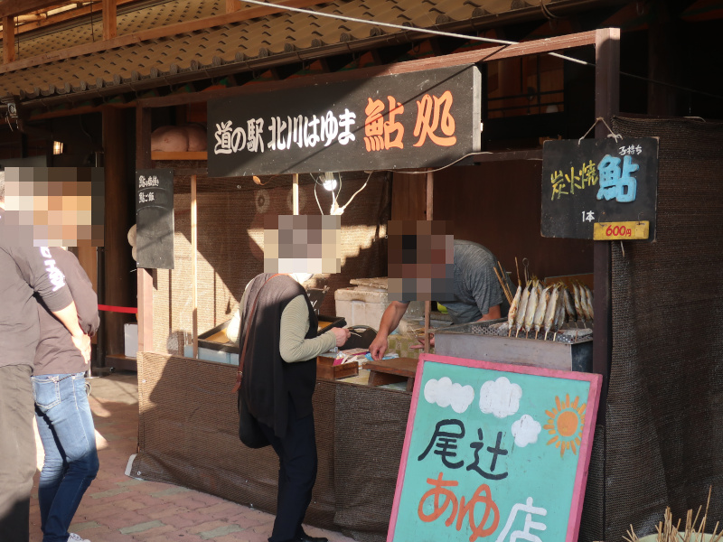 どちらかというと、山なのでこちらの鮎のほうが名物っぽい。この鮎は600円もするらしい。(1人で食べるならまだしも、家族で食べる気はしないよね。高すぎて) |