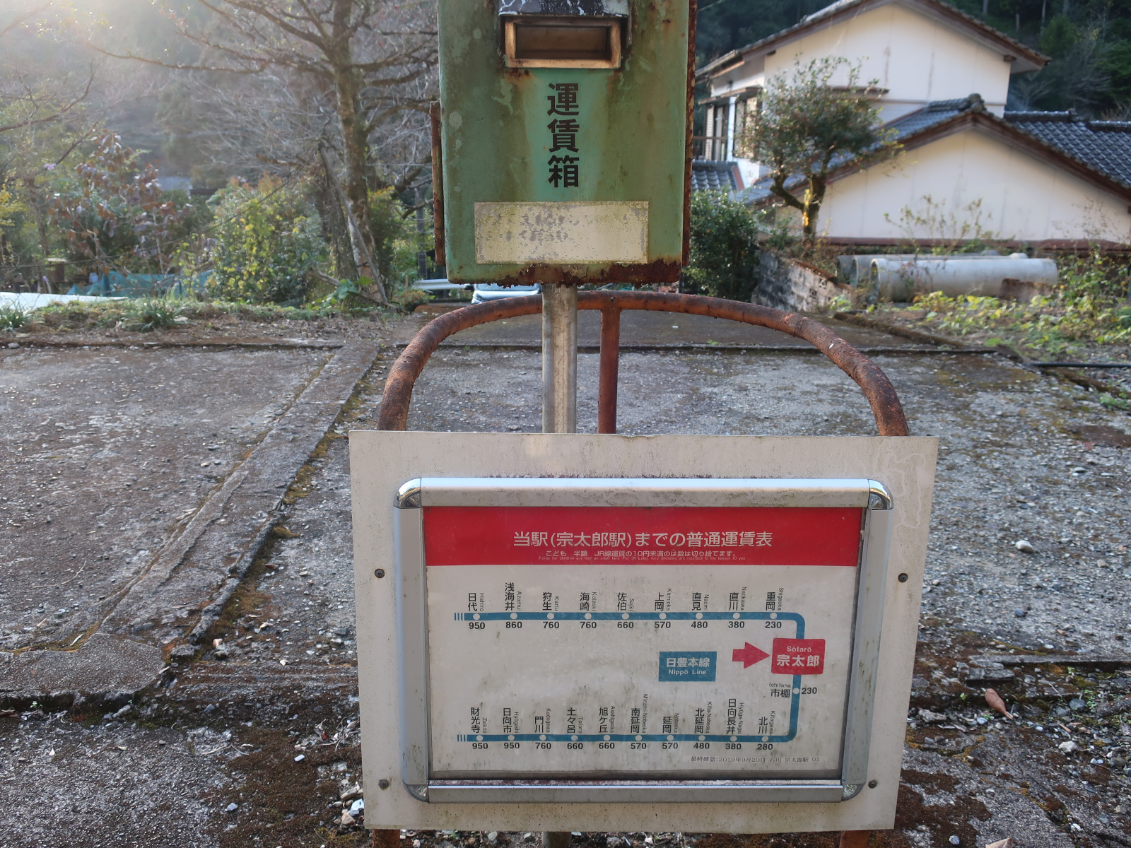 宗太郎駅だ!宗太郎駅をご存じだろうか?この駅の利用者数は1日1人未満で九州を代表する秘境駅。停車する電車は1日1本~2本なので鉄道でこの駅に降りるのは難度が高いが、国道経由だと容易にアクセスできる。 |