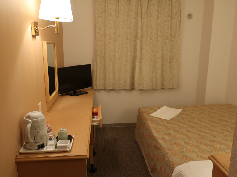 チェックインした後は部屋に入ってベッドに寝っ転がる。今日もクタクタ。毎回、限界までツーリングしている気がする。今日は早めに寝よう。 |