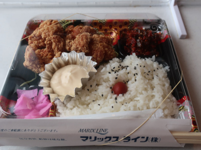 ダラダラしていると昼になった。朝食を抜いたので昼食に期待していたが、食堂は開放せずに弁当制とのこと。弁当のメニューを見るとまたも揚げ物ばかりで致し方なく唐揚げ弁当に・・・。昨日から3食連続で揚げ物ばかりで胃にもあまりよくなさそうだ。とはいえ、とにかく退屈で食べる事しか楽しみがないので仕方なく注文。