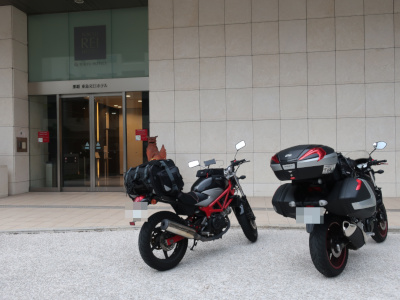 程なくして今日泊まるホテルの「那覇東急REIホテル」に到着。キャンペーン中で2泊8600円という安さだったのでここにしたが、想像以上に立派なホテルでびっくり。一応、事前に電話確認してバイクも駐車(有料)できると聞いていたが、どこにバイクを停めるのかね? |