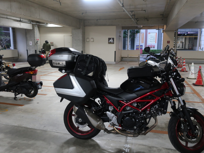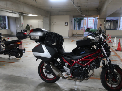 受付で確認するとバイクはすぐ横の駐輪場専用の場所に停めていいとのことでそこに移動する。1泊600円とバイクにしてはかなり高額だが屋根があるのは助かるよ。那覇は土地が狭いからね。こうやってバイクが停められるだけでも有難いよ。 |