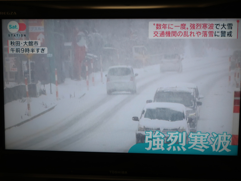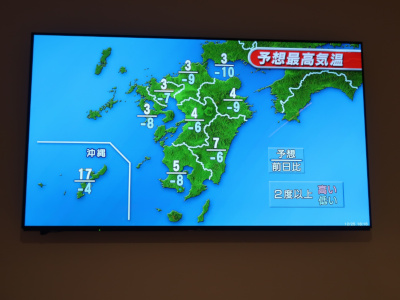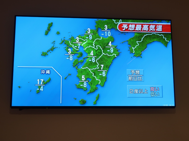 食べた後はホテルに戻る。天気予報を確認するためにテレビを点けると今日は東北地方を中心に強烈な寒波が襲っていたらしい。沖縄にいると同じ日本とは思えない。 |