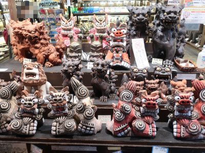 シーサーの置物も多い。しかしツーリングでこれを買って帰るのは無理。ただ、結構嵩張るので家でも邪魔になりそうだ。 |