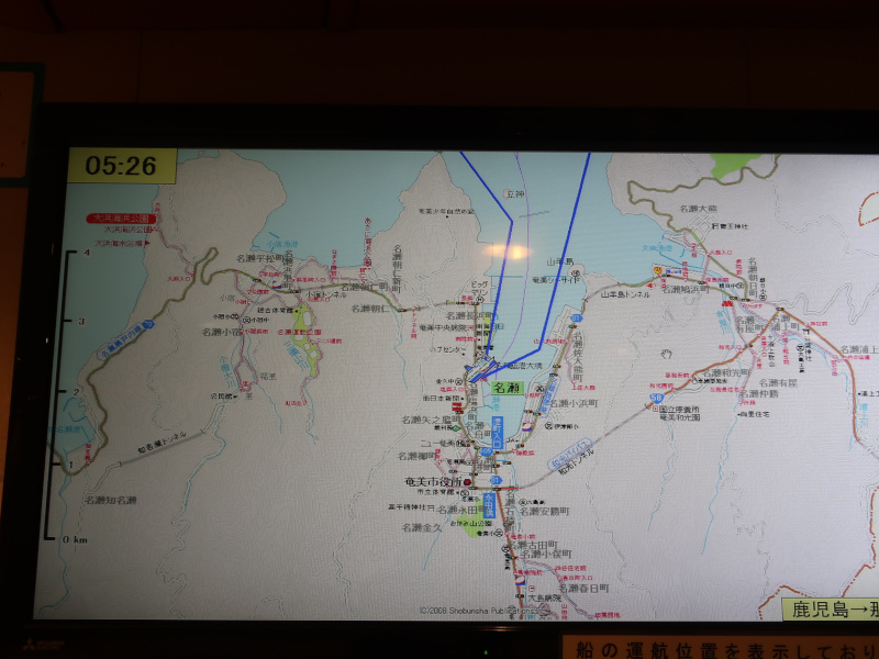 朝、いつの間にか部屋の照明が点灯していて目が覚める。時計を見ると5時過ぎだが、フェリーが奄美大島に到着したらしい。