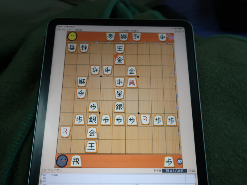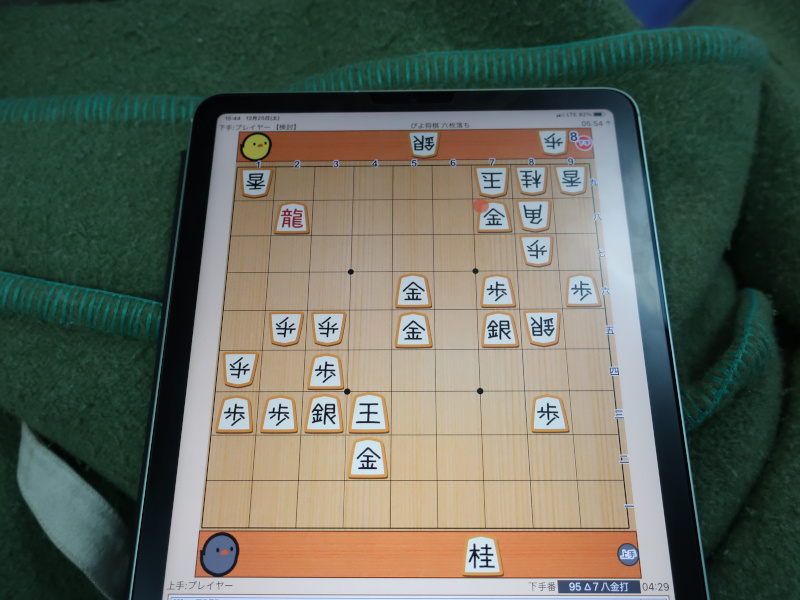 恒例の相棒との暇つぶし。ボクが大駒を入手するとあっという間に勝負が着いてしまう(笑)