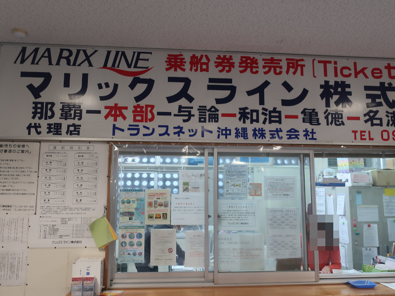 受付でフェリー搭乗の手続きをするが、往復で購入したチケット割引は往復が同じ港に限るらしく、往路が那覇の場合は割引がなくなるらしい。(割引分を返納) 本部の方が近いのでそれぐらい融通があってもいいのに・・・(笑) とはいえ無事にフェリーの予約が出来て良かったよ。