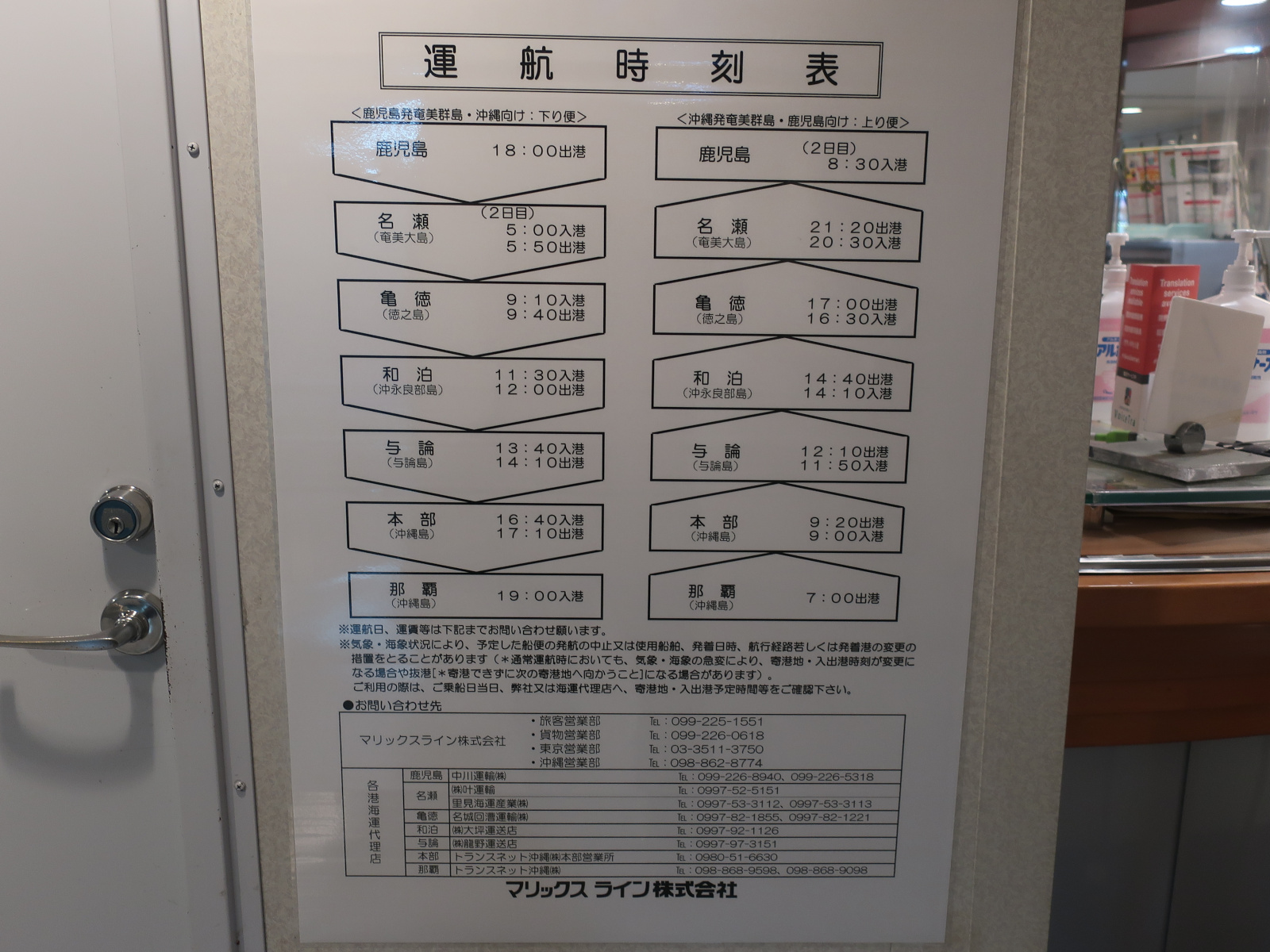 運行時刻表だ。今日は終日フェリーに滞在して明日の朝8時半に鹿児島新港に到着する予定。貴重な年末休みの2日間(往復)をこのフェリーの中で過ごす事になるのが辛いよね。新日本海フェリーのような高速船で鹿児島~沖縄を直通する便ができれば時間も半分になると思うが需要的にまず無理か・・・。やっぱ、沖縄は飛行機で行くに限る(笑)